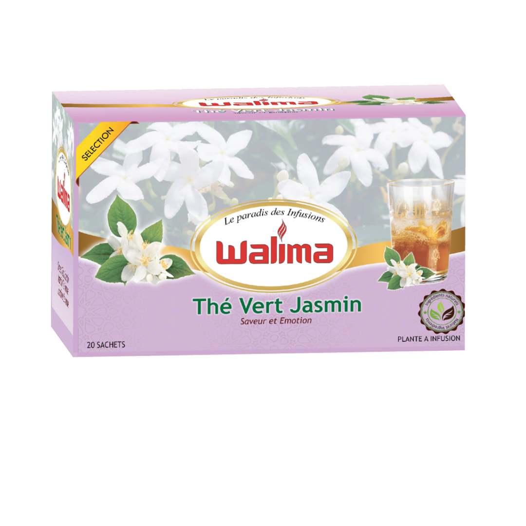 Découvrez l’infusion thé vert jasmin WALIMA, une boisson à base de thé vert soigneusement sélectionné, subtilement parfumée au jasmin. Appréciée pour sa saveur douce et florale, elle se déguste aussi bien chaude que tiède, idéale pour une pause détente à tout moment de la journée. Une infusion raffinée pour les amateurs de goûts délicats.
