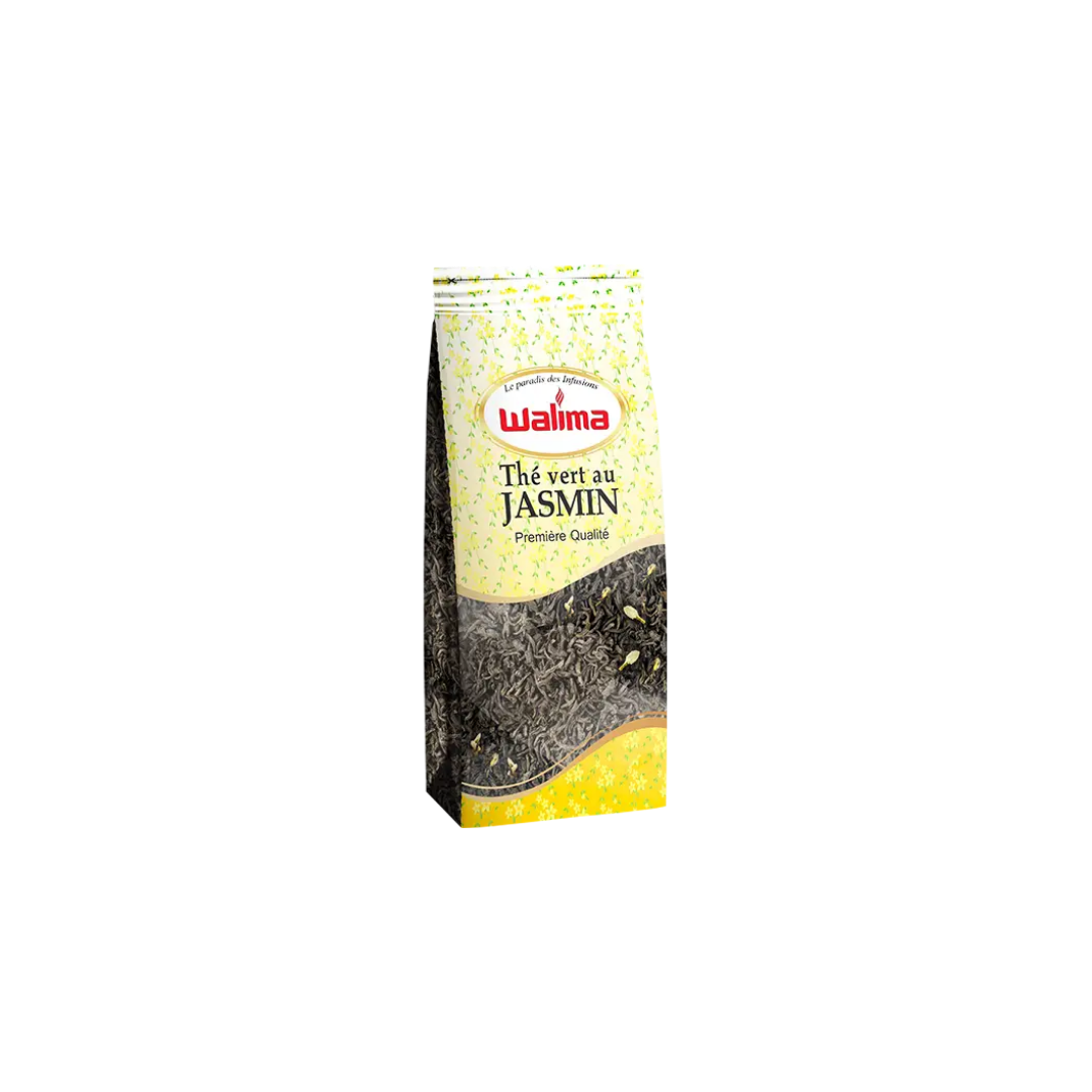 Le Thé au Jasmin WALIMA 400 g est un thé vert délicatement aromatisé aux fleurs de jasmin, offrant une infusion parfumée, douce et rafraîchissante. Sélectionné avec soin, ce thé allie la fraîcheur du thé vert à la délicatesse florale du jasmin pour une expérience gustative raffinée.